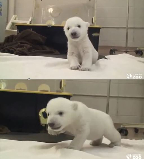 지난 8일(현지시각) 캐나다 토론토선 등의 외신에 따르면 현지 토론토 동물원이 생후 2개월 된 수컷 새끼 북극곰이 첫 걸음마를 떼는 모습을 공개했다.