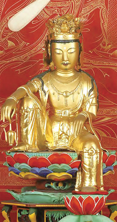 한쪽 다리를 아래로 내리고 다른 한 쪽 다리를 편안히 가부좌로 앉은 유희좌(遊戱座) 형식을 띈 ‘창녕 관룡사 대웅전 관음보살벽화(昌寧 觀龍寺 大雄殿 觀音菩薩壁畵)’를 비롯해 ‘청도 운문사 대웅보전 관음보살․달마대사벽화’ ‘서울 보타사 금동보살좌상’ ‘서울 봉은사 목조석가여래삼불좌상’ ‘서울 옥천암 마애보살좌상’ ‘서울 청룡사 석조지장보살삼존상 및 시왕상 일괄’ ‘서울 화계사 목조지장보살삼존상 및 시왕상 일괄’ 등 7건의 문화재가 보물로 지정 예고됐다.