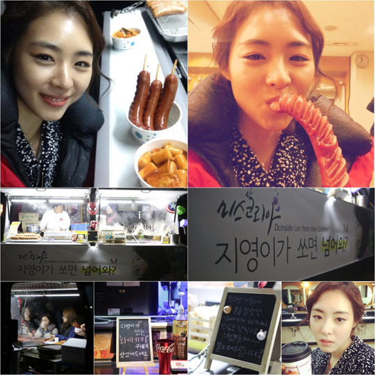 공개된 사진 속 이연희는 팬들이 보내준 야식차 앞에서 행복한 표정을 짓고 있다.