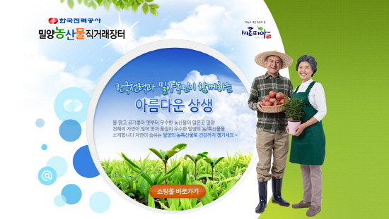 한전은 밀양시와 함께 송전선로 경과지 마을의 농산품 온라인 직거래 장터(http://mirpia.kr/kepco)를 17일 개설했다.