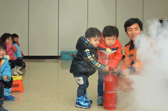 이날 교육은 소방안전 인형극을 시작으로 119로 신고하기, 화재 대피훈련, 연기소화기 체험, 소방차 견학 등의 다양한 내용으로 진행됐다.