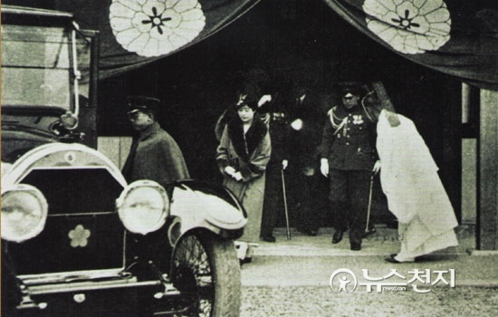 [천지일보=김현진 기자] 영친왕은 신사참배를 마치고 왕족 전용차를 탑승하고 있고, 뒤를 따르고 있는 이방자 여사의 표정에는 근심이 가득하다.
