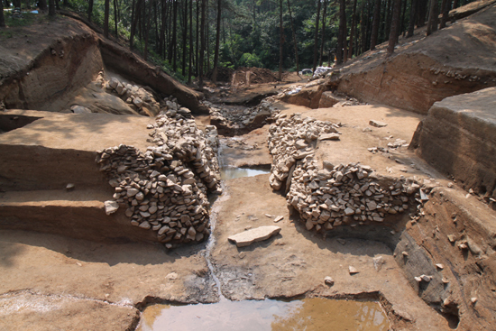 판축기법(版築技法): 흙을 넣어 펴고 ‘축’이란 기구로 다진 다음 다시 흙을 넣고 다지기를 반복해 축조하는 토성의 축조 방법
