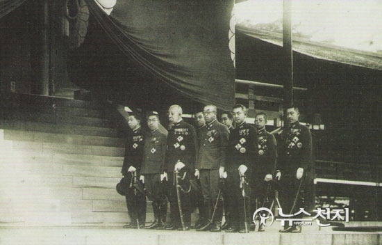 [천지일보=김현진 기자] 일본은 태평양전쟁을 앞두고 조선 왕족들을 이곳 신사에 참배시켰다. 우측 안경을 쓴 이가 조선의 마지막 황태손인 이구공이다.