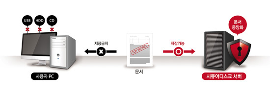 아울러 문서 중앙화 환경을 제공해 로컬에 자료 저장을 금지해 보안을 강화하면서 모든 자료를 통합적으로 관리할 수 있다. 또한, 메일이나 메신저와 같은 온라인 매체에 대한 자료 첨부와 프린트, 화면 캡처, 복사·붙여넣기 등 세부적인 보안 정책 설정이 가능하다.