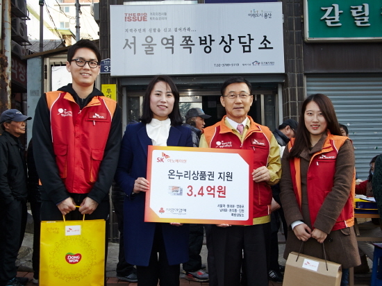 [천지일보=손성환 기자] SK이노베이션 대표 구자영 부회장이 27일 신입사원들과 함께 서울역 근처 쪽방촌을 찾아 생필품 세트와 온누리 상품권을 전달했다.