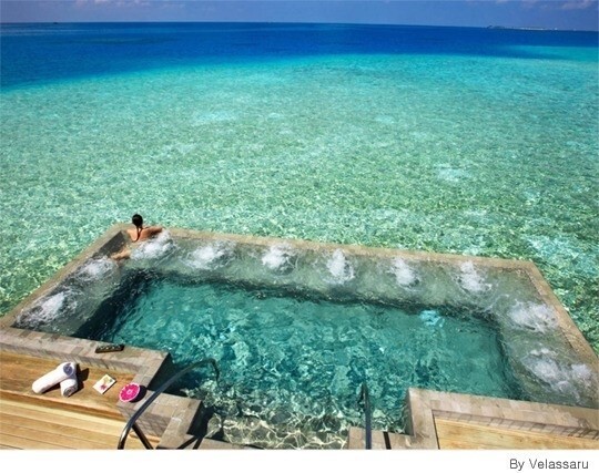 공개된 사진에는 대자연을 개인적인 공간으로 즐길 수 있도록 만든 개인 바다 풀장의 모습이 담겨있다. 이 풀장은 몰디브 한 산호섬의 호텔에 설치된 것으로, 수영이나 스파를 즐기면서 푸른 바다를 감상할 수 있다.