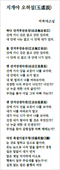 지개야스님은 내담자(도움이 필요하거나 궁금한 것이 있는 사람)가 가슴 가득 쌓인 화를 토할 때 이치에 틀린 말을 해도 토를 달지 않고 그의 말을 긍정하고 추임새까지 넣어 주면서 끝까지 들어준다.