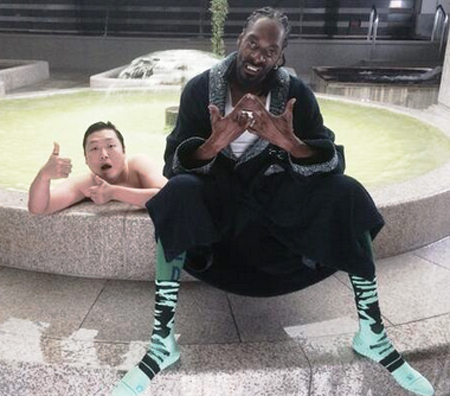 지난 4일 싸이는 자신의 트위터에 스눕독과 목욕탕에서 찍은 사진을 올렸다. 사진의 목욕탕은 싸이의 신곡 뮤직비디오 촬영 현장으로 밝혀졌다.