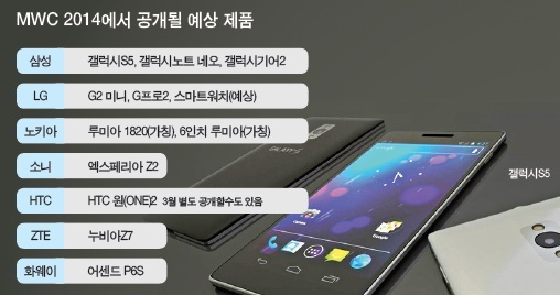 2014년 글로벌 휴대폰 시장에서 경쟁할 제품들도 대거 쏟아진다. 삼성은 갤럭시S5를 필두로 갤럭시노트3 네오, 갤럭시그랜드 네오, 스마트워치인 갤럭시기어2를 선보일 것으로 전망된다. LG전자는 갤럭시S5에 대적할 패블릿 사이즈 ‘LG G프로2’와 함께 ‘G2 미니’를 공개할 예정이다. 노키아는 적어도 두 개의 신제품을, 소니는 엑스페리아Z2를, ZTE는 6.44인 치 누비아Z7을, 화웨이는 어센드P6 업그레이드 버전인 어센드P6S를 공개할 것으로 알려졌다. HTC는 HTC 원(ONE)의 후속작으로 ‘HTC 원2’를 준비 중인 것으로 전해졌지만 MWC 공개여부는 아직 정해지지 않았다.