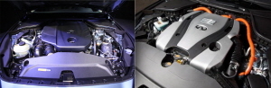 ‘Q50S 하이브리드’는 50㎾(68ps) 전기모터와 3.5리터 6기통 가솔린 엔진(306ps)을 장착해 총 최고출력 364ps를 기록한다. 엔진은 인피니티 대표 하이브리드 차량인 Q70S 엔진에, 초경량 이온 배터리를 사용해 차체를 경량화하면서도 5.1초 제로백(0→100㎞/h 도달시간)의 우수한 성능을 보장했다. Q70S는 영국 자동차 전문지 ‘카 매거진(CAR Magazine)’이 실시한 400m 직선 코스 테스트에서 평균 13.9031초를 기록해 ‘세계에서 가장 빠른 하이브리드 차’로 기네스에 이름을 올린 바 있다. Q50S의 공인 복합연비는 12.6㎞/ℓ다.