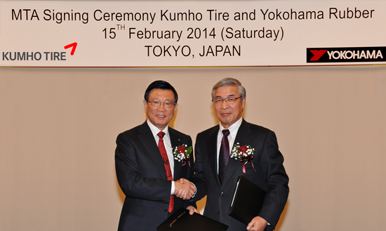 [천지일보=이태교 기자] 금호타이어(대표 김창규)는 지난 15일 세계 8위의 타이어 기업인 일본 요코하마와 글로벌 경쟁력 강화를 위해 기술 제휴에 대한 본계약을 체결했다고 밝혔다.
