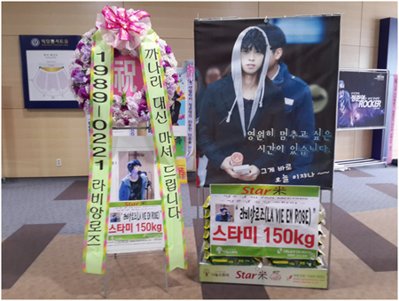 [천지일보=강은영 기자] 16일 연세대학교 백양콘서트홀에서 열린 정준영 팬미팅에 정준영 팬클럽 라비앙로즈에서 쌀화환 150kg을 보내와 응원했다.