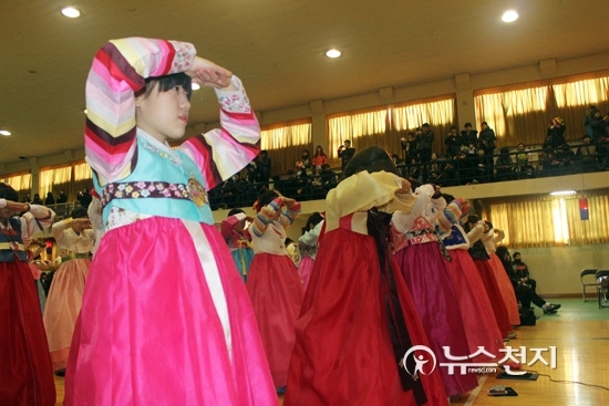 [천지일보=이혜림 기자] 추위가 주춤했던 13일 한복을 곱게 차려입은 여성들이 발걸음을 재촉한다. 청사초롱이 길을 안내하는 곳으로 가니 갖가지 아름다운 색을 뽐내는 한복을 입은 여성들이 90여 명 가량 모여 있다. 이곳은 제91회 졸업식이 열리는 서울시 은평구 통일로에 있는 동명여자정보산업고등학교다.