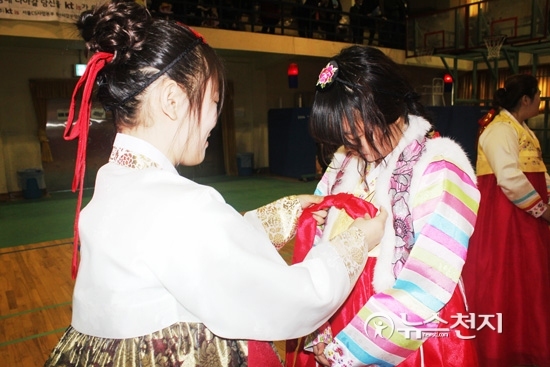 예쁘게 차려 입고 곱게 화장한 채 성인이 되길 기다리는 소녀처럼 보였다. 한울타리에서 꿈과 희망을 키우며 같이 먹고 생활하던 학우들은 서로 옷고름을 매주며 식이 시작하길 기다렸다.