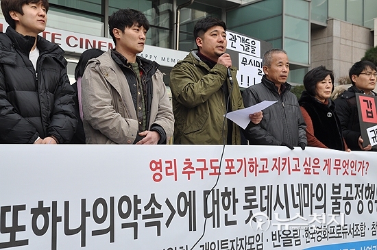 이날 한국영화프로듀서조합의 최은화 대표는 “영화 개봉 이틀 전에야 롯데 측이 서울 1개관을 포함 총 7개관을 통보해 왔지만 작은 배급사나 제작사가 문제제기조차 할 수 없는 게 현실”이라고 지적했다. 극장이 ‘갑’이다 보니 방법이 없다는 것이다.