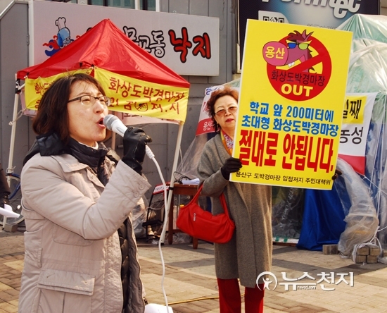 [천지일보=장수경 기자] ‘용산구 화상도박경마장 입점저지 주민대책위(주민대책위)’가 20일 오후 서울시 용산구 전자랜드 옆 18층 건물 앞에서 기자회견을 개최했다.