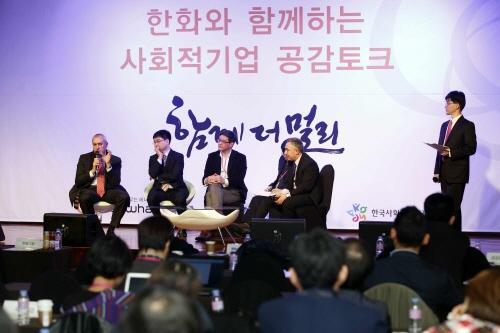 한화그룹과 함께일하는재단은 20일 63빌딩 컨벤션센터에서 사회적기업 성공스토리 공유를 위한 상생 컨퍼런스인 ‘한화와 함께하는 사회적기업 공감토크 함께 더 멀리’ 행사를 개최했다고 21일 밝혔다.