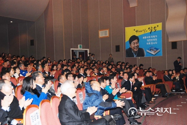 이어 안희정 지사는 도종환 의원의 축하영상에 나온 말을 인용하며 “정조의 수원 화성에 다산 정약용이 있었다면 노무현의 세종시에는 이춘희가 있었다는 말에 전율을 느꼈다”면서 “새로운 대한민국의 내일을 위해 세종시가 지닌 노무현 대통령의 균형발전의 가치와 철학을 반드시 지켜 다른 도약을 이뤄내자”고 강조했다.