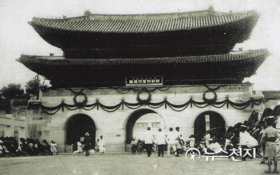 [천지일보=김현진 기자] 공진회 행사를 위해 일본은 광화문과 숭례문에 아치를 장식하고 9월부터 10월 31일까지 자국 상품을 대대적으로 홍보하고 있다.