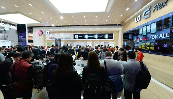 LG전자는 ‘내일을 노크하세요(Knock and Discover Tomorrow)’를 주제로 전략 제품들을 대거 선보여 관람객들의 이목을 집중시켰다. LG전자 부스에 관람객들이 운집해 있다.