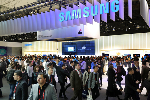 8홀에서 가장 넓은 부스를 마련한 삼성전자 전시장에도 역시 많은 인파가 몰렸다. 삼성은 이날 오후 MWC 현장에서 갤럭시S5를 공개한다.