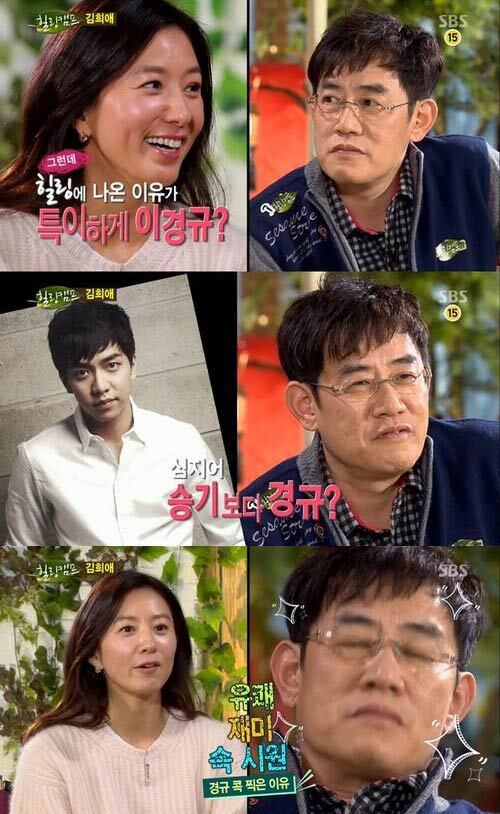 이에 김희애는 “나는 이경규 팬이다. 재밌고 속 시원하게 얘기하는 이경규의 스타일을 좋아한다”고 고백했다.