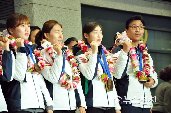 [천지일보=박선혜 기자] 2014 소치동계올림픽에 참가한 한국 선수들이 25일 오후 인천국제공항을 통해 귀국하고 있다. 이날 선수들은 수제 초콜릿 메달을 선물로 받았다.