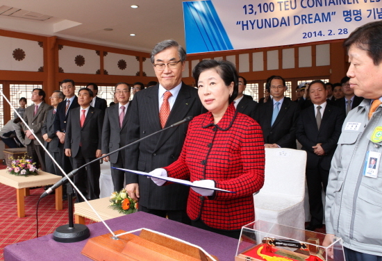 이날 명명식에는 현 회장을 비롯해 선박을 건조한 고재호 대우조선 사장, 유창근 현대상선 사장, 선박금융사 관계자 등 100여 명이 참석했다.