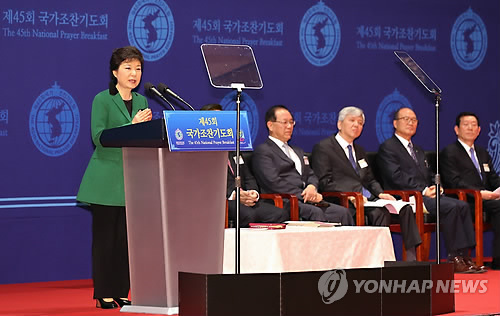 박근혜 대통령은 기도회 인사말을 통해 “기도회에 모인 여러분이 국민의 마음을 모으는 데 밀알이 되어주시고 개혁을 이끌어 가는데 든든한 힘이 되어 주실 것을 부탁드린다”며 “한국교회가 힘을 모아주시면 신뢰와 회복의 한반도 평화 프로세스를 이뤄갈 수 있도록 힘쓰겠다”고 말했다.