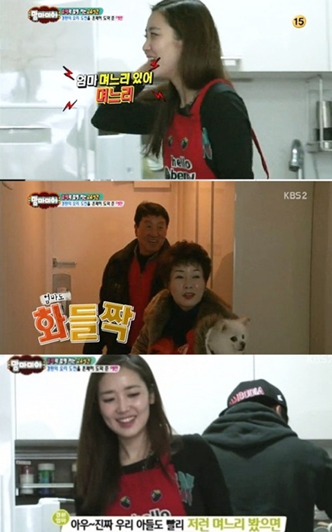 이날 방송에서 부모님을 위한 생일상 요리가 마무리될 쯤 허경환의 부모님이 집에 도착했고 허경환은 부모님께 “엄마, 저기 며느리 있어. 며느리”라고 가애란을 소개했다.