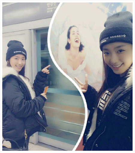 공개된 사진 속에는 보라가 ‘맘마미아’ 포스터를 가리키며 카메라를 향해 활짝 웃고 있는 모습과 지하철을 기다리는 모습이 담겨있다.