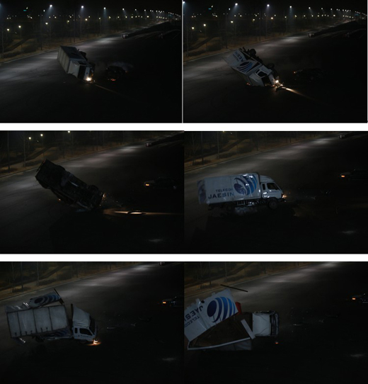 고속으로 달리는 탑차가 단순히 쓰러지는 수준을 넘어 전복된 후 360도 회전하는 장면을 연출하기 위해 고도의 훈련을 받은 스턴트맨과 전문가들을 대거 투입했다.