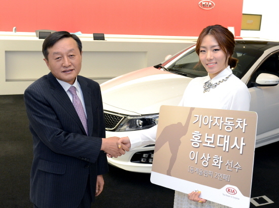 기아차는 지난 1월 불굴의 의지로 세계 최고의 자리에 오른 이상화 선수가 젊고 역동적인 기아차의 브랜드 이미지를 잘 표현할 수 있을 것으로 판단해 홍보대사에 위촉했다. 당시 이상화 선수가 동계올림픽이 얼마 남지 않아 홍보대사 위촉식을 지금에서야 진행하게 됐다고 전했다.