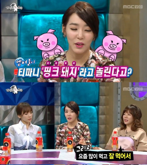 이날 방송에서 멤버들 사이에서 티파니의 최근 별명이 ‘핑크돼지’인 것이 알려졌다.