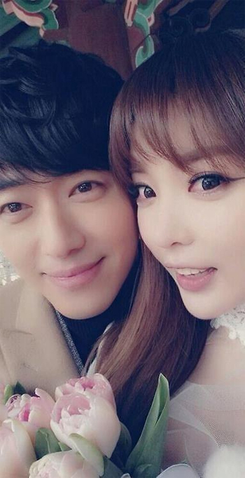 공개된 사진 속 남궁민과 홍진영은 서로의 얼굴을 맞댄 채 환한 미소를 짓고 있다.