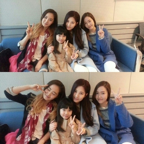 공개된 사진에는 소녀시대의 멤버 유리, 서현 제시카와 아역배우 김지영이 소파에 앉아 다정한 포즈를 취하며 카메라를 바라보고 있는 모습이 담겨 있다.