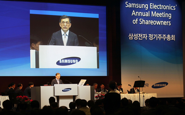 [천지일보=이승연 기자] 14일 삼성전자 제45기 주주총회에서 주주배당금을 놓고 권오현 부회장(대표이사)과 소액주주 간 입씨름이 벌어졌다. 이사 보수한도에 대해서는 주주들 간에 의견이 갈리기도 했다.