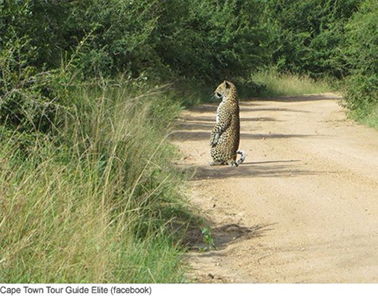 한 온라인 커뮤니티에 올라온 ‘표범이 혼자 있을 때’ 사진이 공개됐다. 사진 속 표범은 마치 뒷발로 서서 몸을 세우고 주위를 정찰하는 미어캣처럼 몸을 꼿꼿하게 세운 채 어딘가를 응시하고 있다.
