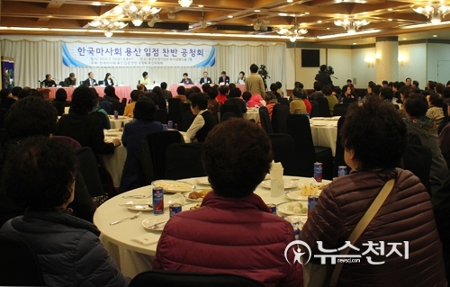 [천지일보=김민아 기자] 한국마사회 용산 입점 찬반 공청회 추진위원회가 14일 오후 서울시 용산구 용산동 뮤지엄웨딩홀에서 한국마사회 용산 입점 찬반 공청회를 개최한 가운데 용산구민이 찬반의견을 경청하고 있다.