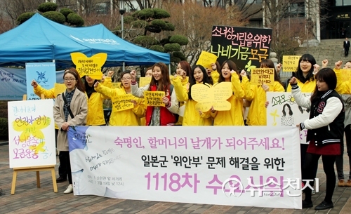 이는 (사)한국정신대문제대책협의회가 서울시 종로구 일본대사관 앞에서 주최한 정기 1118차 수요시위와 동일한 시간에 이뤄졌다.