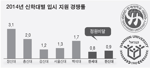 서울신학대학교 신학대학원은 모집 정원 160명에 2011년 271명 지원이었지만 올해는 200명이 지원했다. 백석대학교 신학대학원은 300명 모집에 2011년 613명이 지원, 올해는 100여 명이 줄어든 500명에 그쳤다.