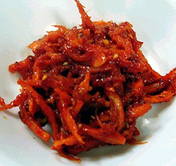 2. 더덕의 물기를 제거한 후 분량의 양념장 재료를 섞어 넣어 고루 버무려 낸다.