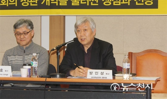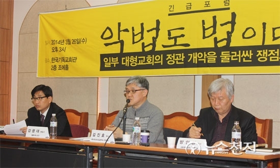 [천지일보=정현경 기자] 최근 사랑의교회(오정현 목사)가 발표한 ‘교회정관 전면 개정안’을 둘러싸고 논란이 커지자 교회개혁실천연대가 일부 대형교회의 정관 개정 문제를 지적하는 긴급포럼을 개최했다.