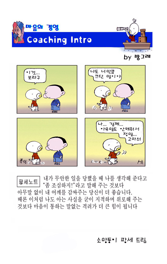 관련기사 [마음의 경영] 당신이 [마음의 경영] 여태 이것밖에 안 자랐다니 [마음의 경영] 비에도 젖지 않는 마음이 [마음의 경영] 뿌리는 땅속 어두움 속으로 [마음의 경영] 너 때문이야 [마음의 경영] 비에도 젖지 않는 마음이 [마음의 경영] 나는 커서 [마음의 경영] 당신에게 나사가 [마음의 경영] 힘들지? [마음의 경영] 행복은