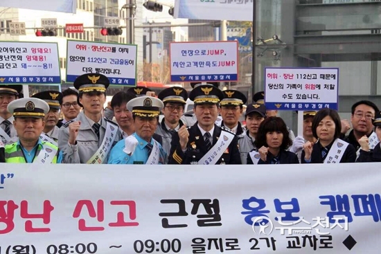 [천지일보=김현진 기자] 서울 중부경찰서(서장 윤소식)는 31일 오전 8시부터 9시까지 을지로 2가 교차로에서 만우절(4월 1일)을 앞두고 경찰과 협력단체합동으로 ‘112신고 신속출동을 위한 허위신고 근절 캠페인’ 행사를 출근길 시민을 대상으로 벌였다.