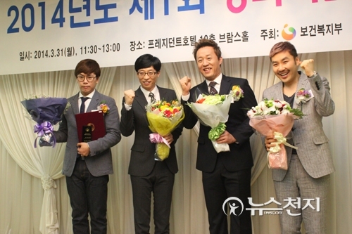 [천지일보=김민아 기자] MBC 무한도전 출연팀이 31일 서울시 중구 프레지던트호텔에서 개최된 ‘제1회 행복나눔인상 시상식’에서 파이팅을 외치며 기념사진을 촬영하고 있다.