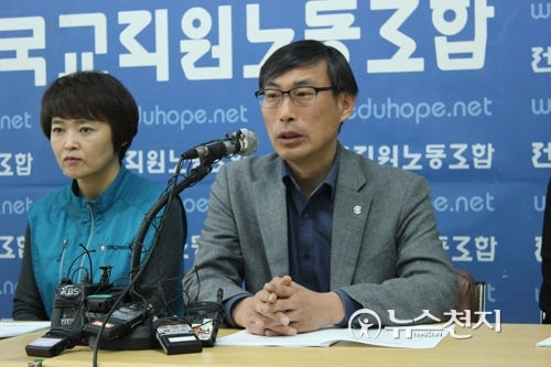 [천지일보=김민아 기자] 김정훈 전교조 위원장이 1일 서울시 영등포구 영등포동 현대플라자 전국교직원노동조합 대회의실에서 개최된 ‘불법적 재정지원 자사고 지정철회 촉구 전교조 기자회견’에서 모두발언을 하고 있다.