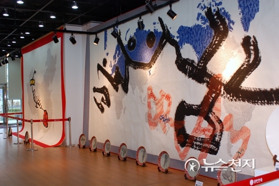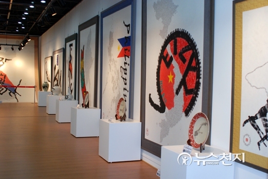 [천지일보=김현진 기자] UN이 인정한 세계평화지도 작가이자 김포시명예홍보대사인 한한국(조선대정책대학원 초빙교수) 평화작가의 ‘2014.한한국평화특별전’이 새로 개관한 김포아트홀 1층 전시갤러리에서지난 1일 개막해 6일까지 전시된다.