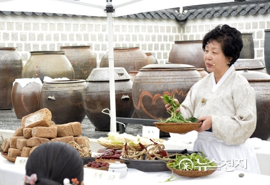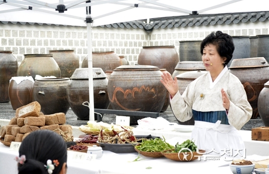 [천지일보=박선혜 기자] 4월의 첫 주말이었던 5일 오후 2시 경복궁 장고에서 ‘궁중 장 담그기’ 행사가 진행됐다. 궁중 음식분야 중요무형문화재인 한복려 장인이 장 담그기 과정을 설명하고 있다.